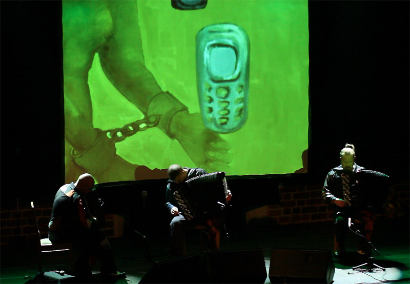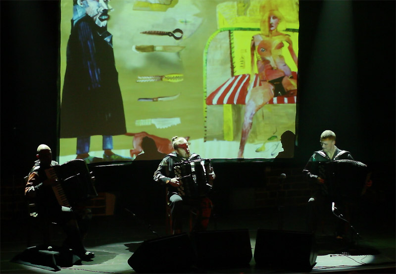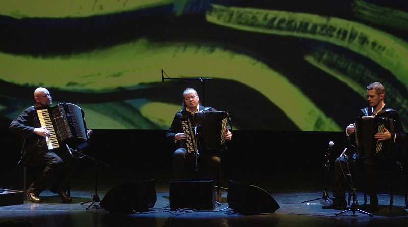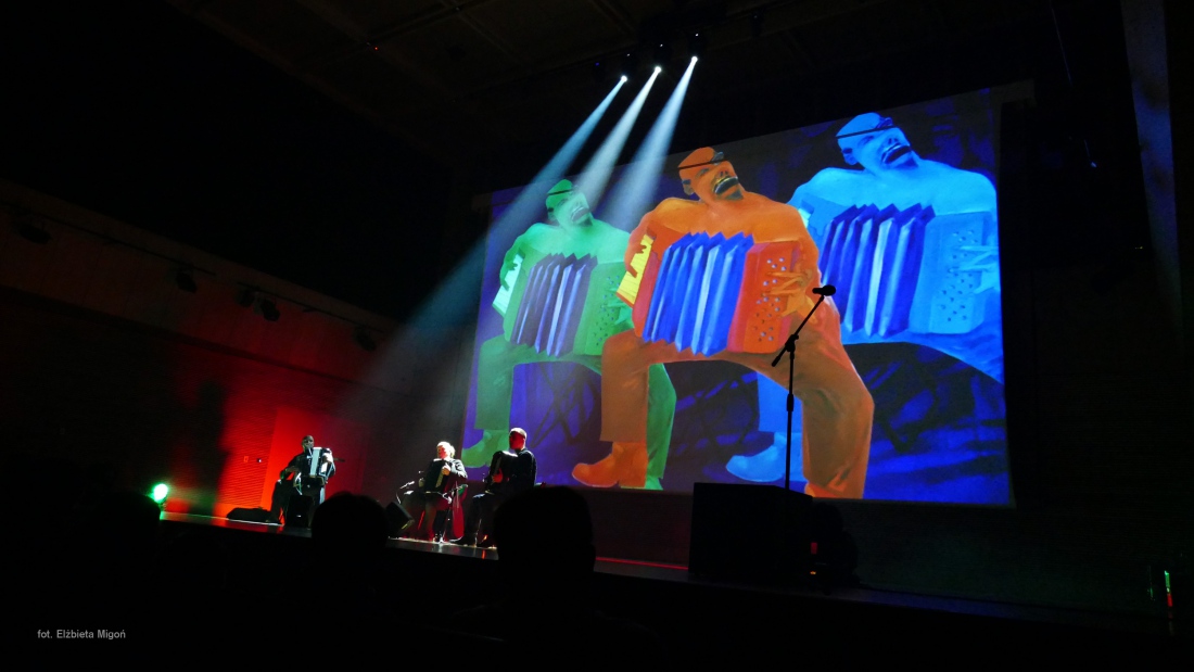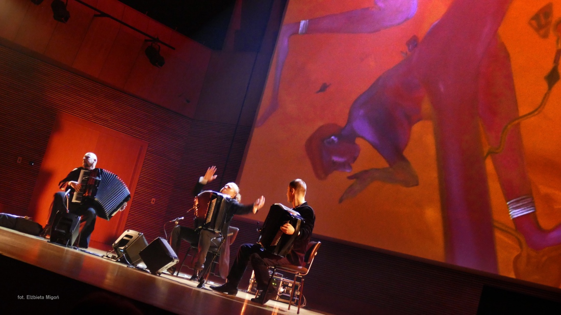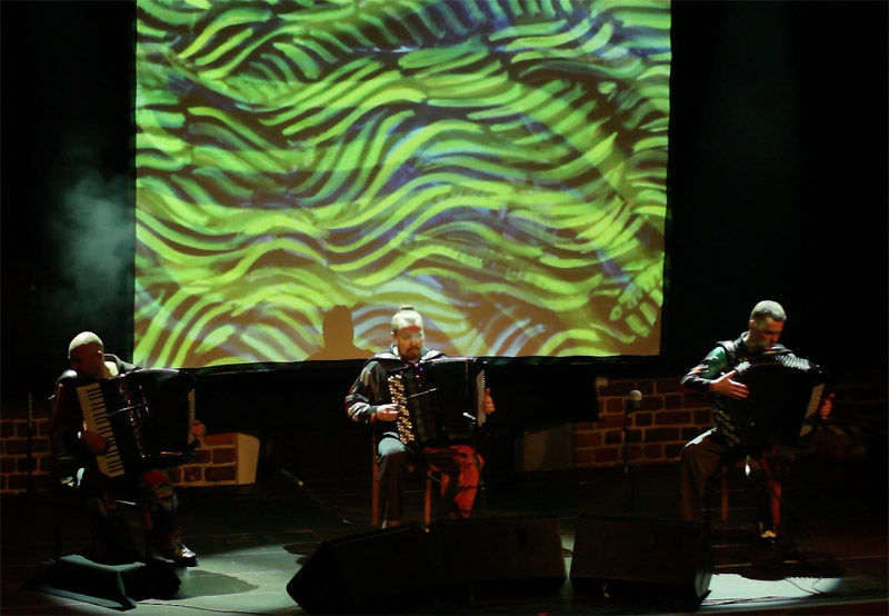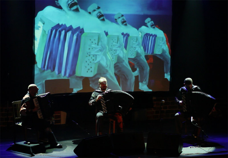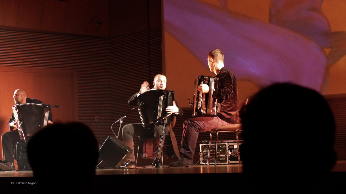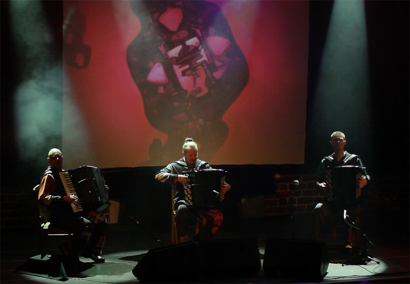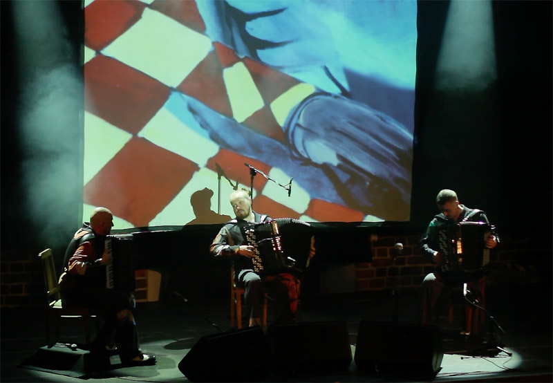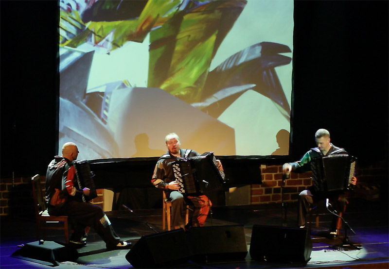 i autora większości kompozycji. Ewenement na europejskim i światowym rynku muzycznym. Janusz Wojtarowicz, Paweł Baranek i Marcin Gałażyn to światowej klasy akordeoniści. Wykorzystując w swej twórczości wszelkie zalety akordeonu, odkrywają wciąż nowe możliwości tego instrumentu, zmieniając jego oblicze. Ich koncerty to muzyczne spektakle zawierające akcję i dramaturgię.